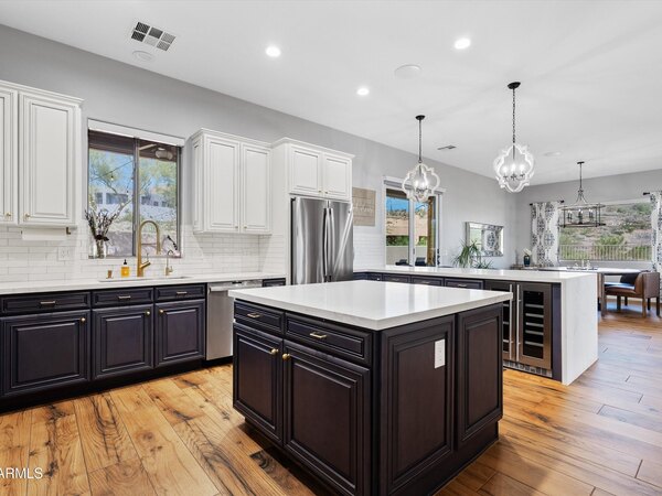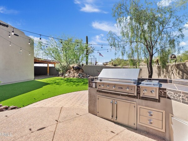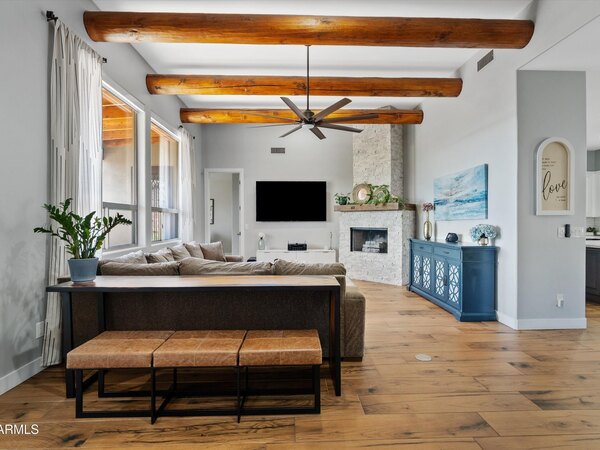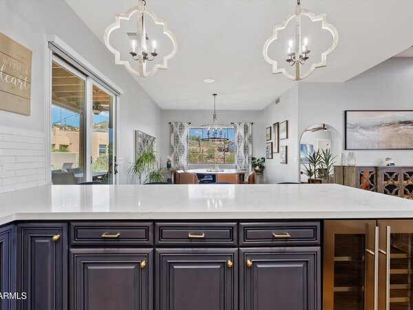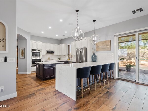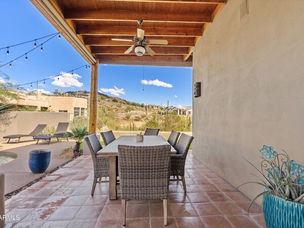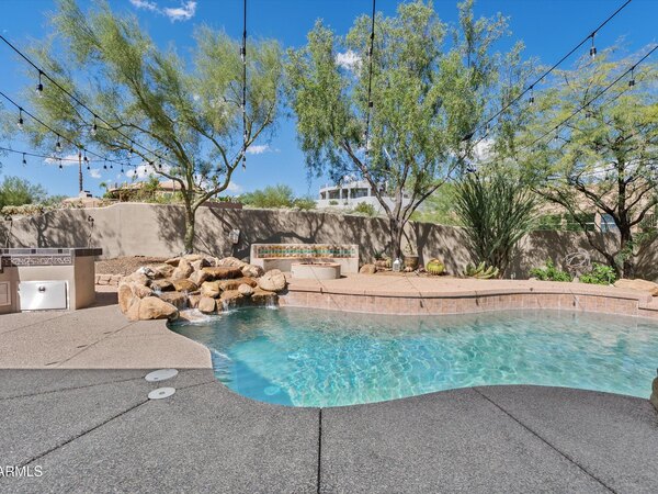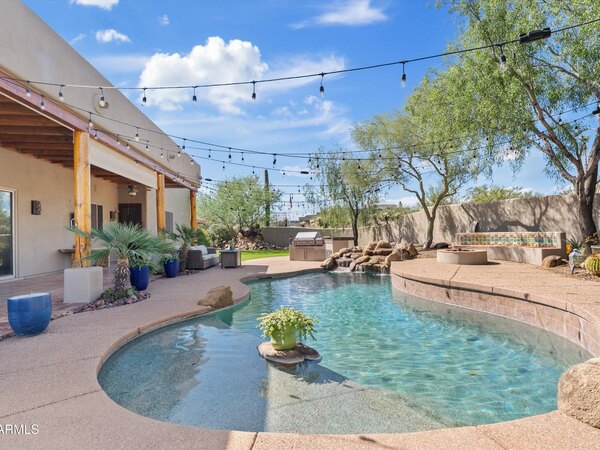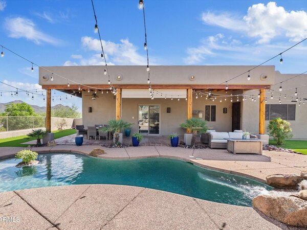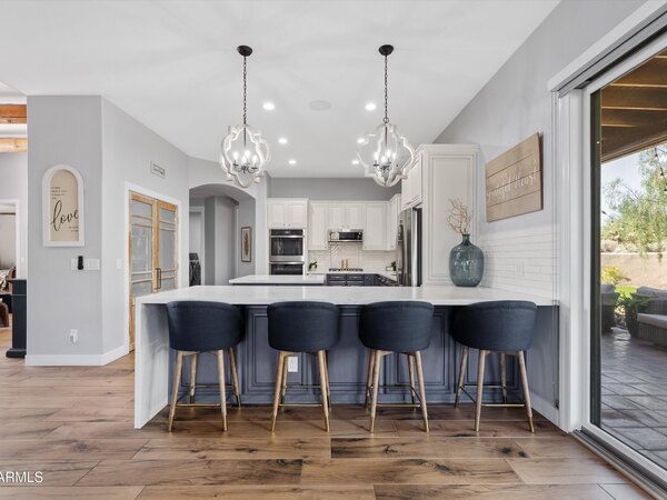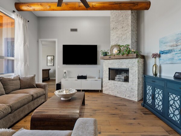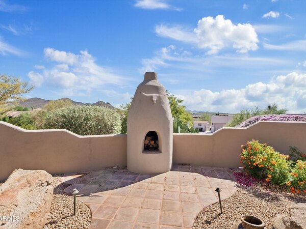 这座维护无可挑剔的 4 卧室、3.5 浴室的豪华住宅经过完美改造,设有游泳池,融合了精致的设计和宁静的沙漠生活。这座单层庄园占地 1.1 英亩,提供开放、光线充足的平面图,配有高耸的天花板、舒适的壁炉、带石英台面的厨师厨房、不锈钢器具和新的(2025 年)双烤箱。每间卧室都拥有定制衣柜、套间浴室,并可直接通往自己的私人露台,非常适合无缝的室内外生活。主套房设有经过翻新的水疗式浴室和步入式衣柜。在室外,您可以享受波光粼粼的游泳池、人造草坪、内置烧烤设施、火坑和壮丽的山景。扩展的 3 车位车库、充足的停车位和没有 HOA 完善了这个非凡的沙漠山度假胜地。