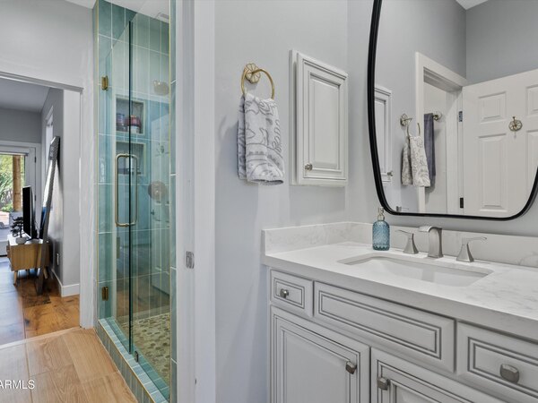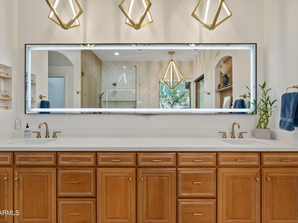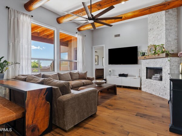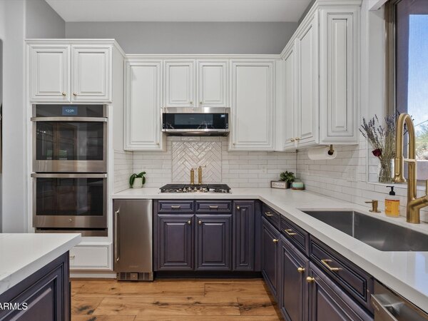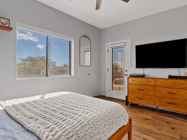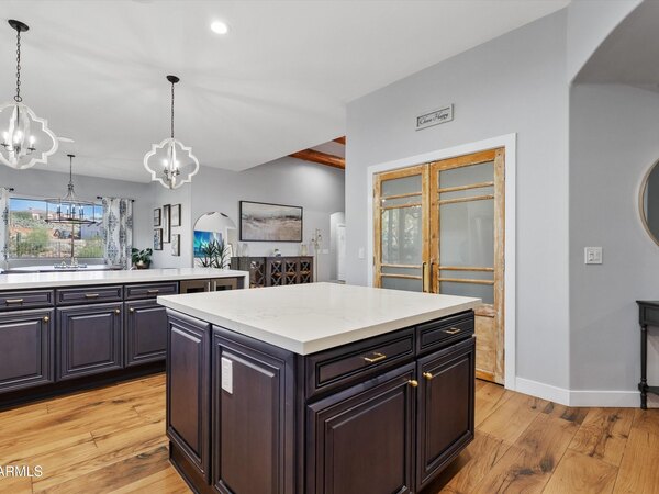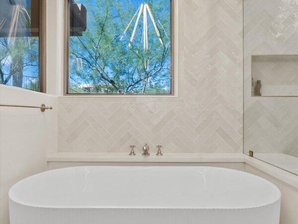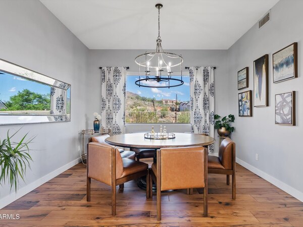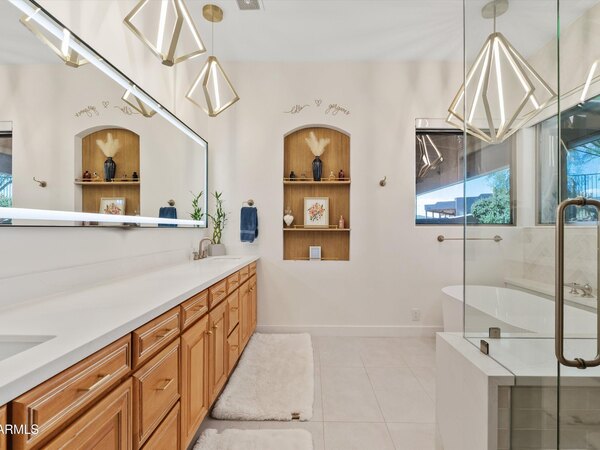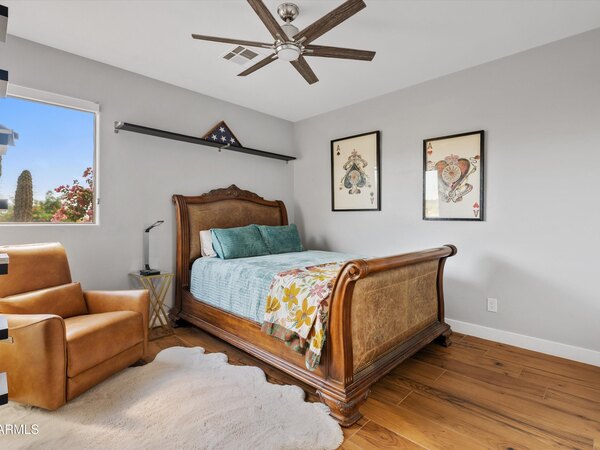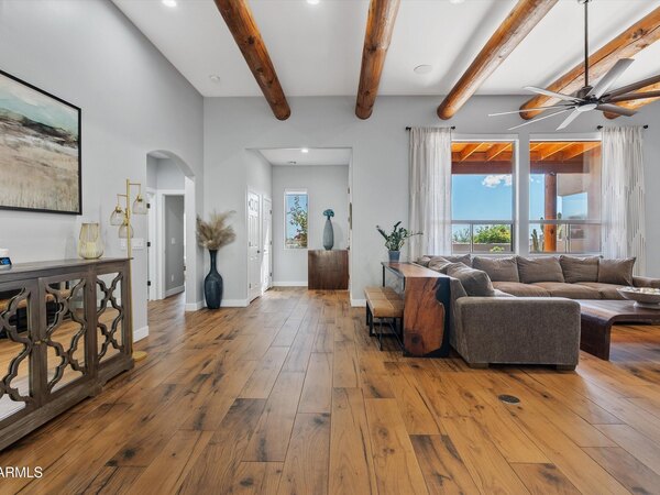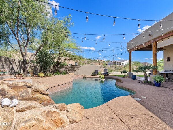 这座维护无可挑剔的 4 卧室、3.5 浴室的豪华住宅经过完美改造,设有游泳池,融合了精致的设计和宁静的沙漠生活。这座单层庄园占地 1.1 英亩,提供开放、光线充足的平面图,配有高耸的天花板、舒适的壁炉、带石英台面的厨师厨房、不锈钢器具和新的(2025 年)双烤箱。每间卧室都拥有定制衣柜、套间浴室,并可直接通往自己的私人露台,非常适合无缝的室内外生活。主套房设有经过翻新的水疗式浴室和步入式衣柜。在室外,您可以享受波光粼粼的游泳池、人造草坪、内置烧烤设施、火坑和壮丽的山景。扩展的 3 车位车库、充足的停车位和没有 HOA 完善了这个非凡的沙漠山度假胜地。