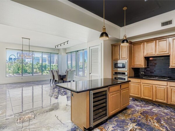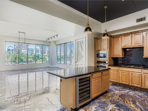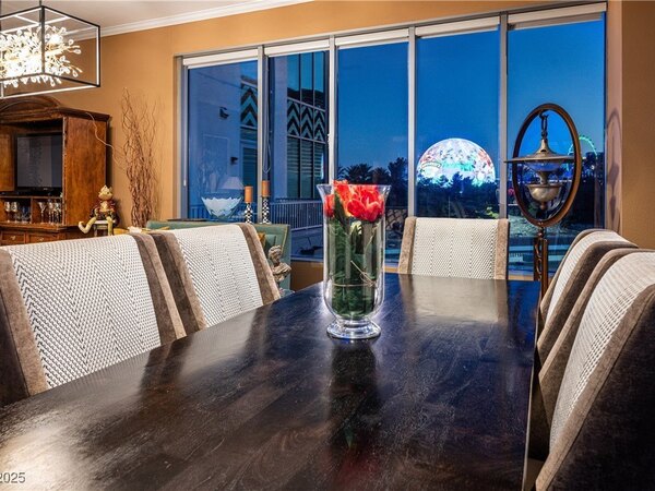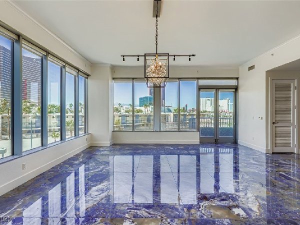 住在拉斯维加斯最具建筑特色的高层建筑之一 The Metropolis,这里装饰艺术设计与全景相遇。这座令人惊叹的住宅享有拉斯维加斯大道和球体的美景。两个私人阳台非常适合欣赏拉斯维加斯的天际线。粉刷一新的起居和用餐区铺有进口地板,享有壮丽的景色。厨师厨房配备了顶级的 GE Profile 电器,包括燃气灶灶、双烤箱、保温抽屉、花岗岩台面和葡萄酒冰箱。主套房可直接通往阳台、步入式衣柜以及带浸泡浴缸和独立淋浴间的连接浴室。卧室 2 有自己的套间和私人阳台。此外,您还会发现一个用于私人办公室或图书馆的多功能空间。此外,该单元还有 2 个并排停车位和一个 6 英尺 x 9 英尺的储物单元。Metropolis 的设施包括:温水游泳池、健身房、24 小时保安、狗狗公园、烧烤区和果岭!